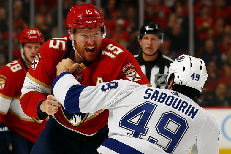 The tension stemmed from past postseason meetings—four in the last five years—including a violent 2025 series marred by suspensions. That bad blood boiled over early, when Tampa Bay’s Scott Sabourin took down Aaron Ekblad and delivered a punch that forced the defenseman out of the game. Sabourin received a match penalty for intent to injure and now faces a disciplinary hearing.