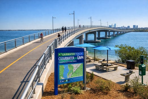 A $15.3 million pedestrian overpass along the Courtney Campbell Causeway is on track to open by year’s end, connecting Clearwater Beach to Tampa and enhancing regional walkability.
