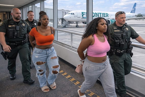 Three women were arrested at Miami International Airport after a dispute over a carry-on bag fee escalated into a confrontation that delayed a Frontier Airlines flight by about an hour.