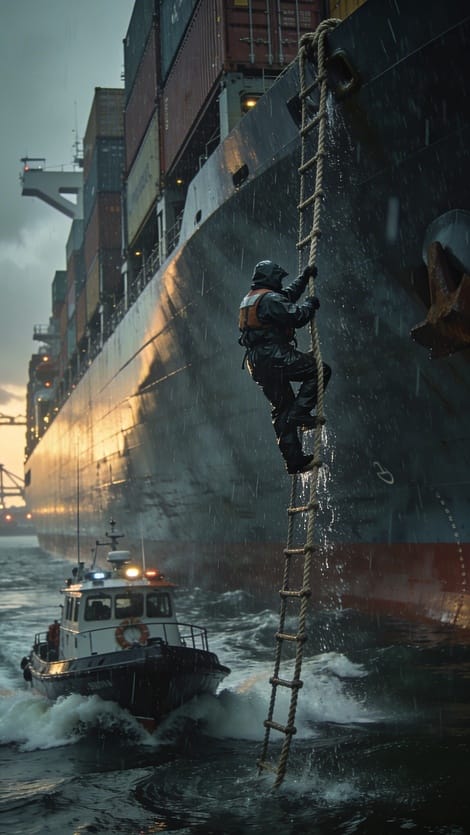 Video from the arrival showed a pilot climbing a rope ladder between the pilot boat and the towering ship, highlighting the skill and risk involved in bringing vessels of this size safely ashore.